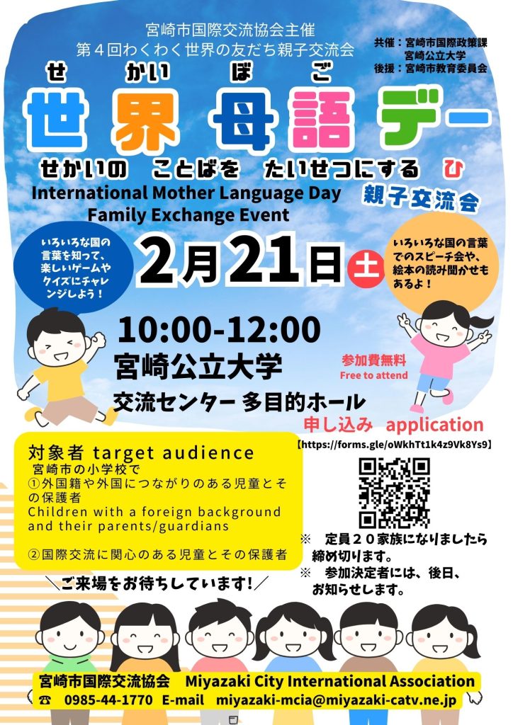 世界母語デー(世界の言葉を大切にする日)にちなんで、交流会を開きます。国際感覚を育むあたたかな時間をご用意しています。まだまだ人数に余裕がありますので、ぜひ参加してください!